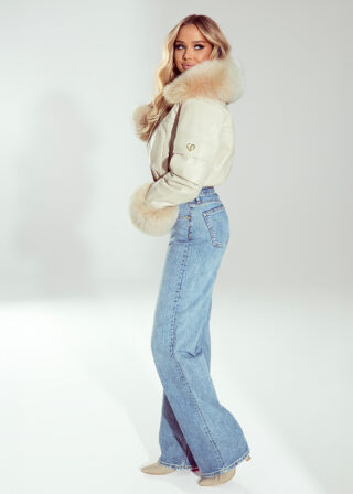 Beżowa kurtka Nelly z naturalnym obszyciem z lisa to model, który wyróżnia się wyjątkowym charakterem i detalami w duchu premium. Wysokiej jakości tkanina o satynowym połysku współgra z miękkim, naturalnym futrem z lisa umieszczonym przy kołnierzu i mankietach. Krótki, dopasowany krój z paskiem w talii podkreśla sylwetkę, nadając jej kobiecego kształtu. Złote detale – klamra, zamek oraz logo LoveYa – dodają elegancji, a funkcjonalne kieszenie czynią kurtkę praktyczną i komfortową w noszeniu. Idealna zarówno do jeansów, jak i do skórzanych legginsów. Projekt w 100% wykonany w Polsce.