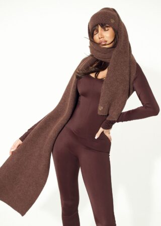 Brązowy komplet Emmy to elegancki duet składający się z ciepłej czapki z pomponem oraz długiego, miękkiego szalika. Jego klasyczny odcień brązu doskonale komponuje się z zimowymi stylizacjami, dodając im wyrafinowania. Minimalistyczne złote logo LoveYa nadaje całości luksusowego charakteru. Komplet Emmy to idealny wybór zarówno do puchowej kurtki, jak i płaszcza, tworząc spójny, modny look w stylu premium. Zaprojektowany w Polsce z myślą o kobietach, które cenią styl, wygodę i jakość.