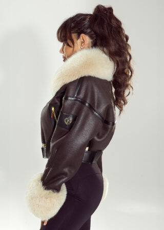 Brązowy kożuch Everest z naturalnym obszyciem z lisa zachwyca efektownym, puszystym futrem na kołnierzu oraz mankietach, które nadaje mu prawdziwie luksusowy charakter. Krótki, lekko oversize’owy fason pięknie układa się na sylwetce, a pasek w talii pozwala dopasować model do figury, podkreślając kobiece proporcje.