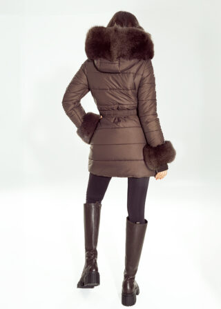 - Naturalne futro z lisa przy kapturze i mankietach