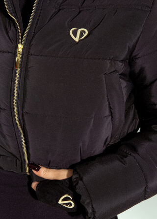 Czarna kurtka Rachel od LoveYa to modowa odpowiedź na potrzeby współczesnych kobiet – nowoczesna forma, minimalistyczny design i pełna swoboda noszenia. Krótszy fason pięknie podkreśla talię, a lekko błyszczący materiał nadaje całości eleganckiego charakteru. Kurtka została wyposażona w wysoki kołnierz, który chroni przed wiatrem, oraz złoty suwak, dodający szlachetnego wykończenia. Dzięki ściągaczowi u dołu możesz dopasować ją do swojej sylwetki. Całość powstała w Polsce – z dbałością o jakość i zrównoważoną produkcję.