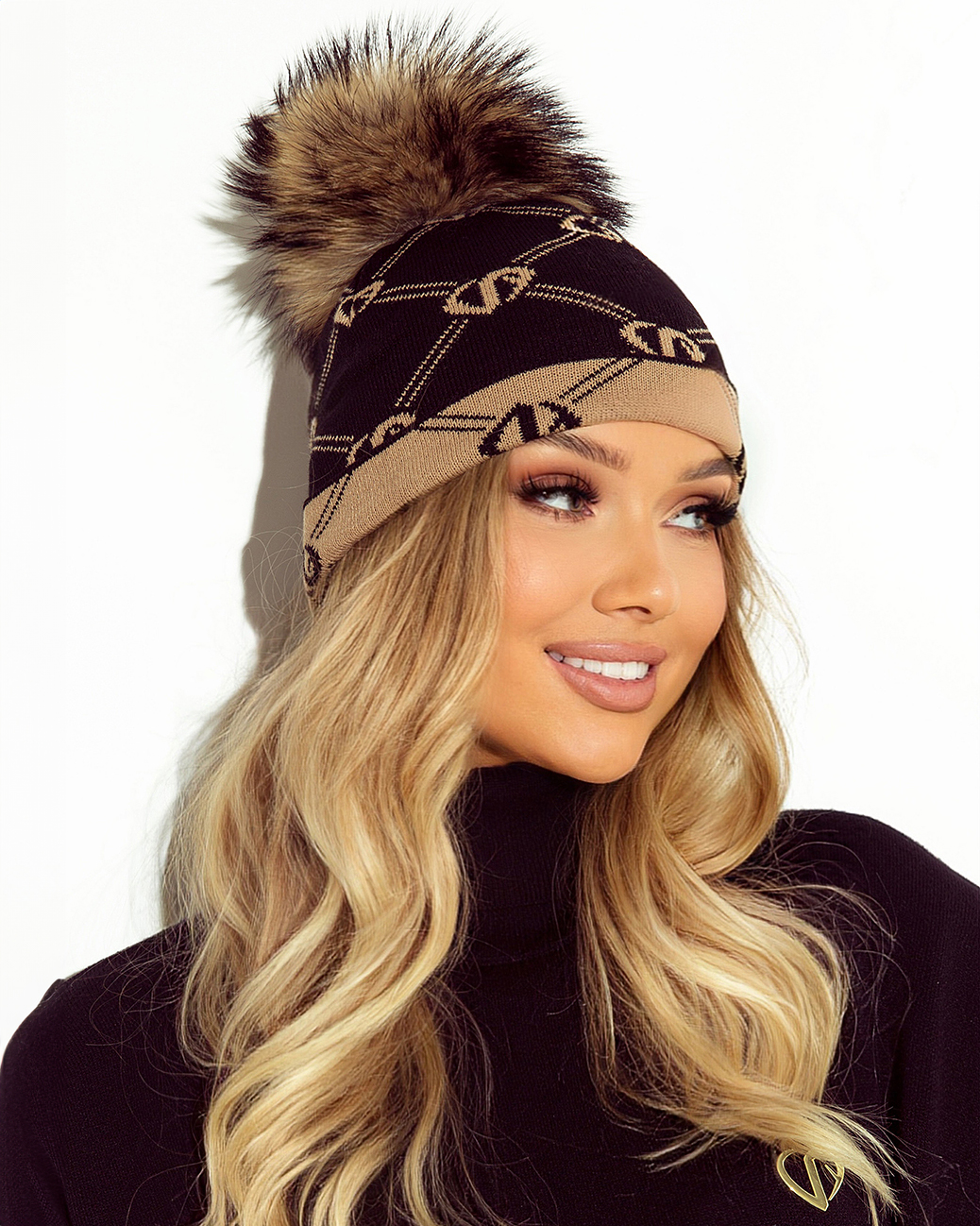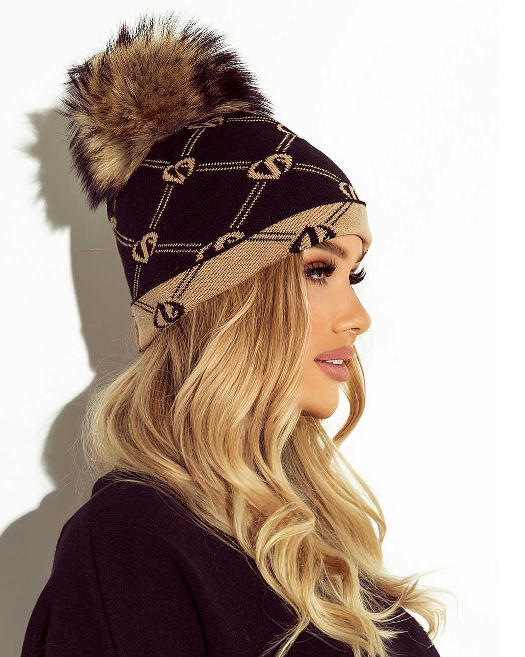 Czarna logowana czapka LoveYa z pomponem z jenota została zaprojektowana z myślą o kobietach, które lubią wyraziste dodatki o luksusowym charakterze. Subtelny, powtarzalny motyw logo LoveYa nadaje czapce nowoczesnego, modowego wyglądu, a naturalny pompon z jenota dodaje objętości i prestiżu.