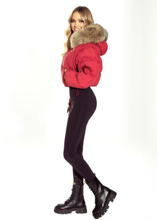 Czerwona kurtka Mia z naturalnym obszyciem to kwintesencja zimowego stylu LoveYa. Krótki, lekko oversize’owy krój dodaje nowoczesności, a miękkie, naturalne obszycie kaptura zapewnia elegancję i ciepło. Puchowe wypełnienie gwarantuje doskonałą izolację, przy zachowaniu lekkości i komfortu noszenia. Złote detale – zamek i logo LoveYa – wprowadzają luksusowy akcent, a odpinany kaptur zwiększa funkcjonalność modelu. Kurtka idealna zarówno do sportowych stylizacji, jak i do eleganckich zimowych zestawów. Zaprojektowana i uszyta w Polsce z dbałością o każdy detal.